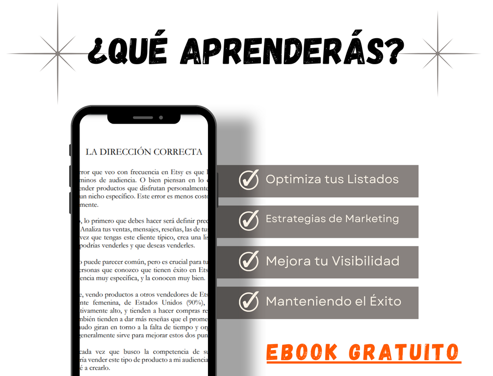 ¿Te has preguntado cómo algunos vendedores en Etsy logran convertir sus productos en auténticos superventas? Con nuestro ebook gratuito "Crea Superventas en Etsy", te guiaremos paso a paso para que tú también puedas alcanzar ese nivel de éxito. Este recurso completo está diseñado tanto para principiantes como para vendedores experimentados que buscan afinar sus estrategias y aumentar sus ventas.